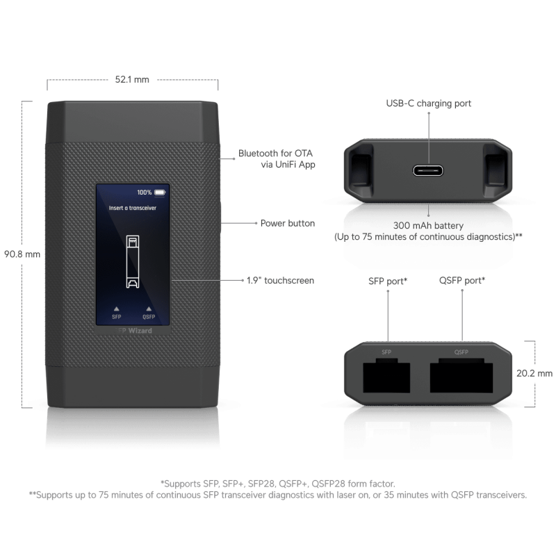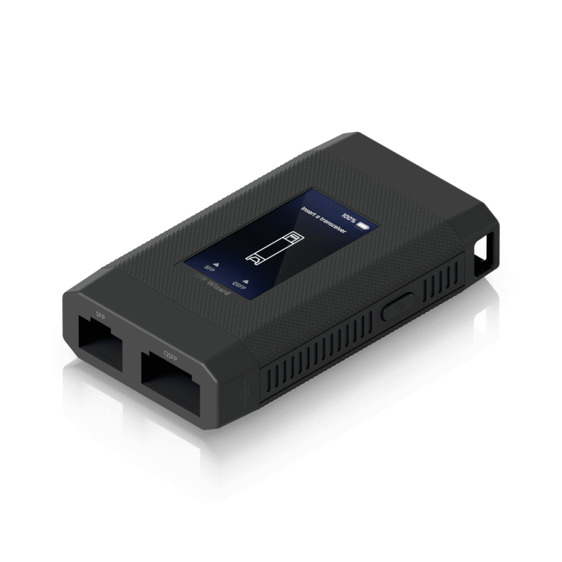 Ubiquiti SFP Wizard är ett kompakt men kraftfullt verktyg som direkt testar och programmerar SFP- och QSFP-moduler – perfekt för installatörer och nätverkstekniker.