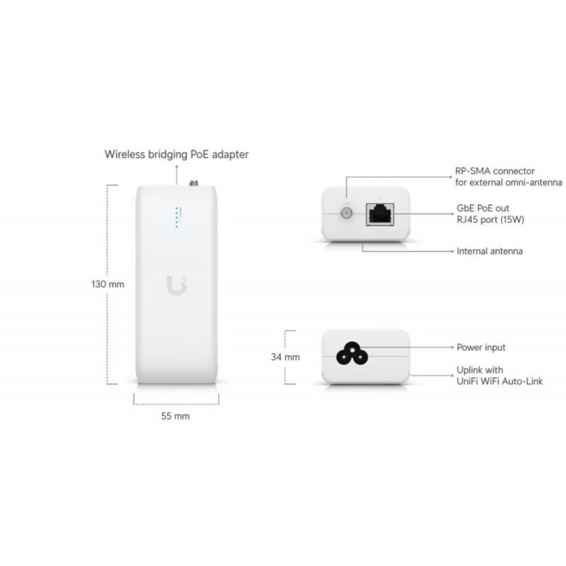 UniFi Device Bridge är en smart plug-and-play-lösning som trådlöst förlänger ditt nätverk med hjälp av UniFi WiFi Auto-Link-teknik. Den här kompakta enheten ansluts enkelt till befintligt UniFi-nätverk och erbjuder upp till 867 Mbps via 5 GHz-bandet – perfekt för pålitlig, högpresterande kommunikation i både hem och företag.