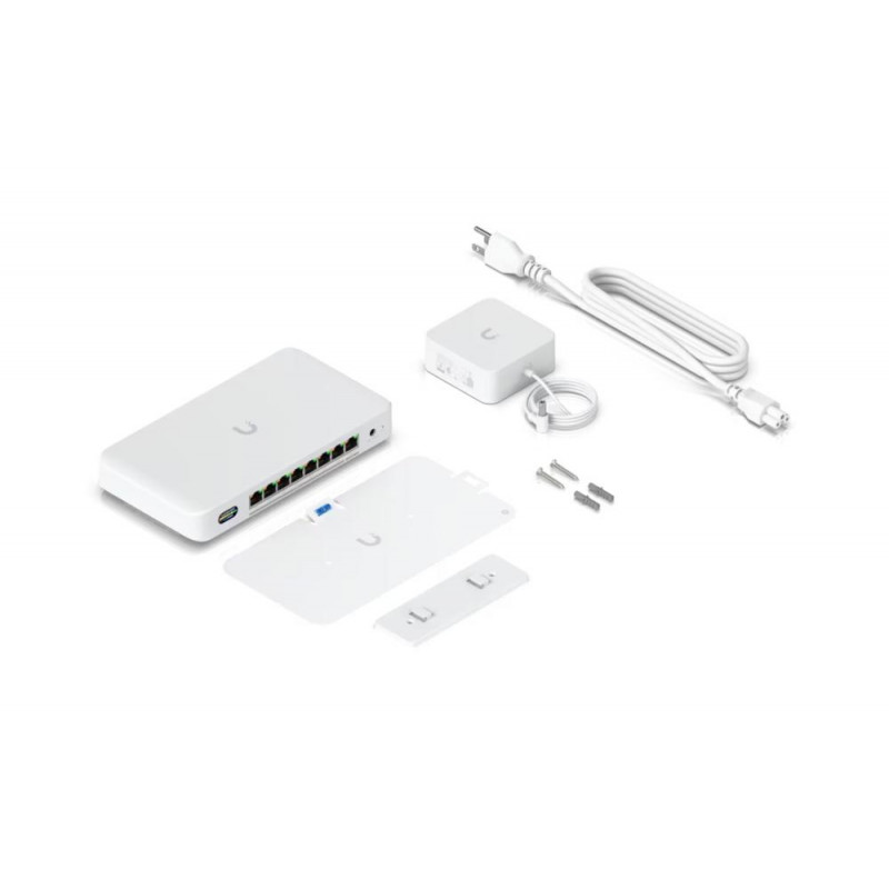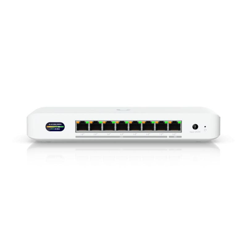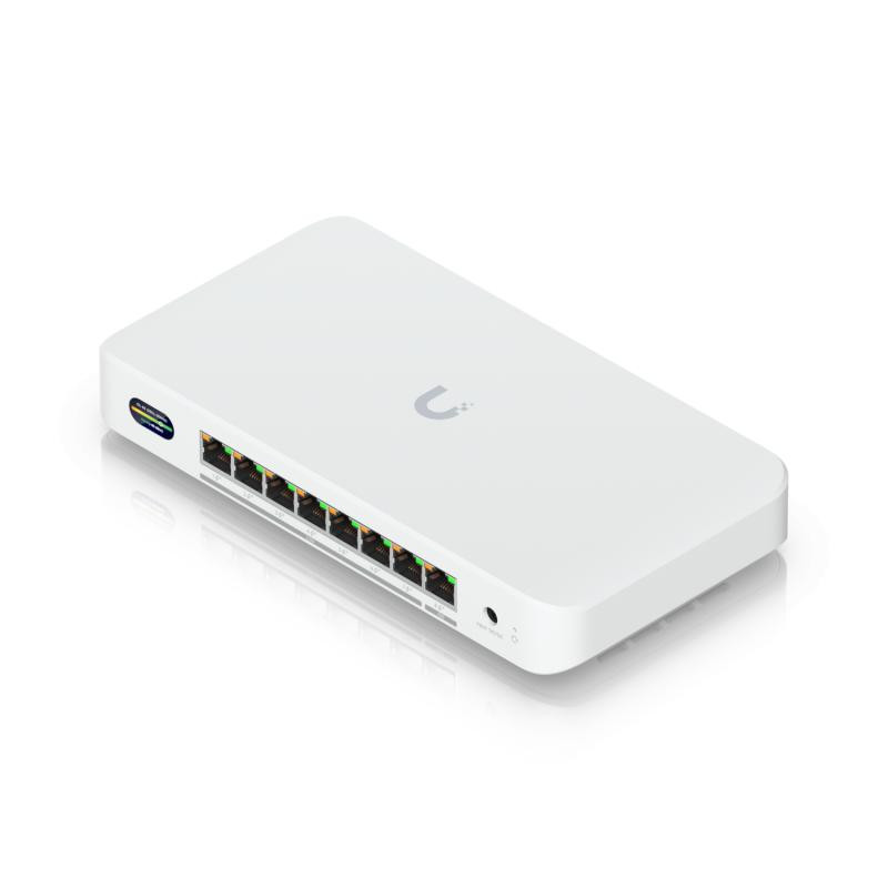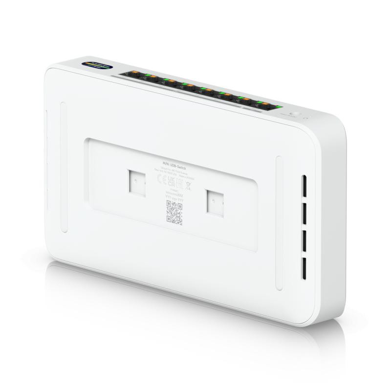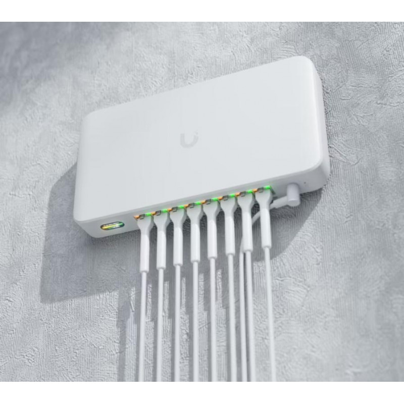 UniFi Device Bridge Switch (UDB-Switch) kombinerar en kraftfull multi-gigabit nätverksswitch med WiFi 7-bryggning i ett smidigt och mångsidigt format. Med åtta PoE+-portar, inklusive en 10 GbE-uplink och sju 2.5 GbE-portar, är den perfekt för att koppla in moderna UniFi-enheter som kräver hög bandbredd.