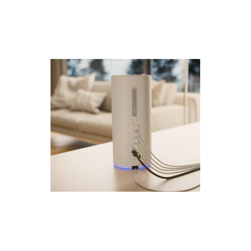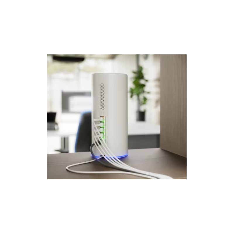Säkerheten är i fokus med CyberSecure-skydd som innehåller mer än 20 000 IDS/IPS-signaturer, stateful firewall, innehållsfilter, DPI samt stöd för moderna VPN-tekniker som WireGuard, IPsec, OpenVPN och Teleport. Den 4.7” stora pekskärmen ger snabb åtkomst till nätverksstatus och inställningar.